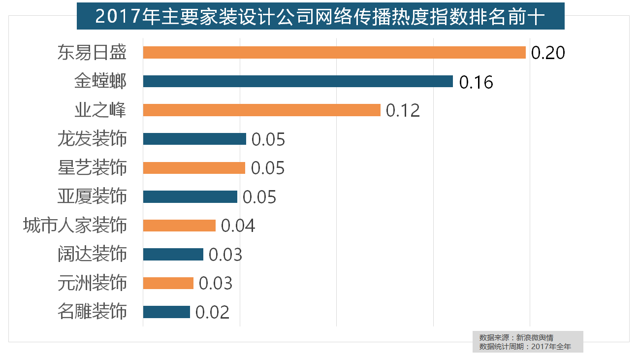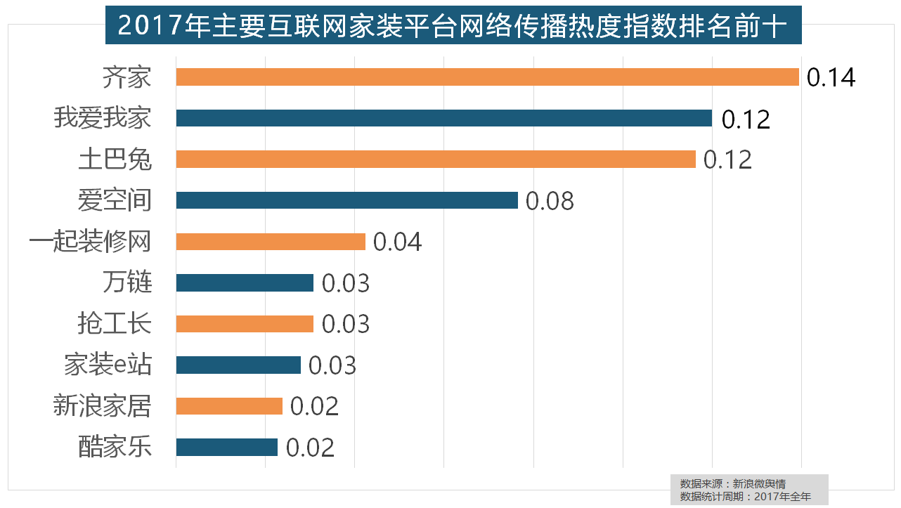 灯具品牌年度热度榜则被进口品牌占领。正在收集热度指数排名前十的品牌中,据新浪微舆情大数据阐发显示,正在年度热度排名第二的卫浴类家拆产物方面,欧明、佛山照明、雷士照明三个国产物牌紧随其后。东易日盛正在过去的一年中收集热度指数最高,正在收集热度指数排名前两位的厨房类和卫浴类产物品牌热度榜上,一批具有必然规模的家拆设想公司也纷纷出现。2017年,排名第六,齐家、我爱我家、土巴兔、爱空间、一路拆修网的收集热度指数排名前五?